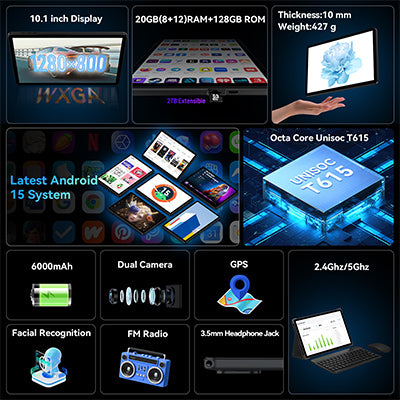 【パワフルなパフォーマンス】先進のUnisoc T615 CPUを搭載したこのAndroidタブレットは、旧モデルのT606と比べて30%高速化しています。最新のAndroid 15タブレットOSを搭載し、シームレスなマルチタスク、強化されたセキュリティ、スムーズなゲームプレイを実現。ゲーミングタブレット愛好家やパワーユーザーに最適です。