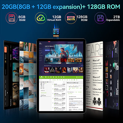 十分なストレージ容量】20GB RAM(8GB + 12GB拡張可能)と128GB ROM(2TB microSDカード対応)を搭載したこの10インチAndroidタブレットは、アプリ、ゲーム、メディアを保存するための比類のない容量を提供します。市販のほとんどのタブレットと比較して比類のないストレージ容量を提供し、あらゆるデータストレージニーズを満たします。さらに、このタブレットはGMS認証を取得しているため、Netflix、FacebookなどのGoogleソフトウェアをシームレスに簡単にダウンロードできます。